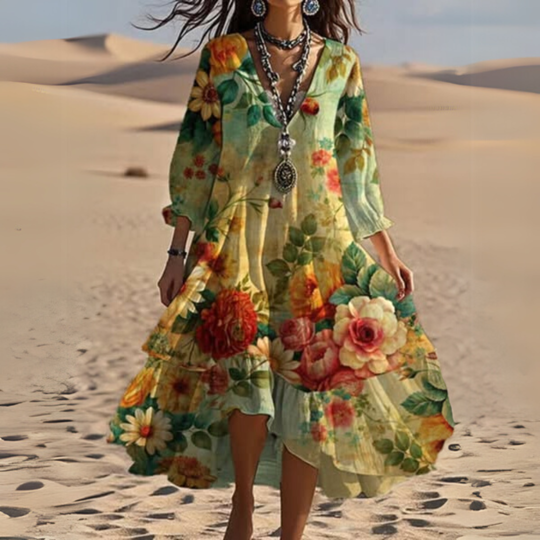 Une touche de romantisme intemporel. Découvrez la robe florale vintage qui allie élégance et légèreté dans un design qui séduit au premier coup d'œil. Parfaite pour les journées ensoleillées, les promenades en ville ou les soirées en plein air, cette robe vous accompagne partout avec style et féminité. Idéale non seulement pour l'été, mais aussi pour vivre le printemps avec fraîcheur et couleur.
